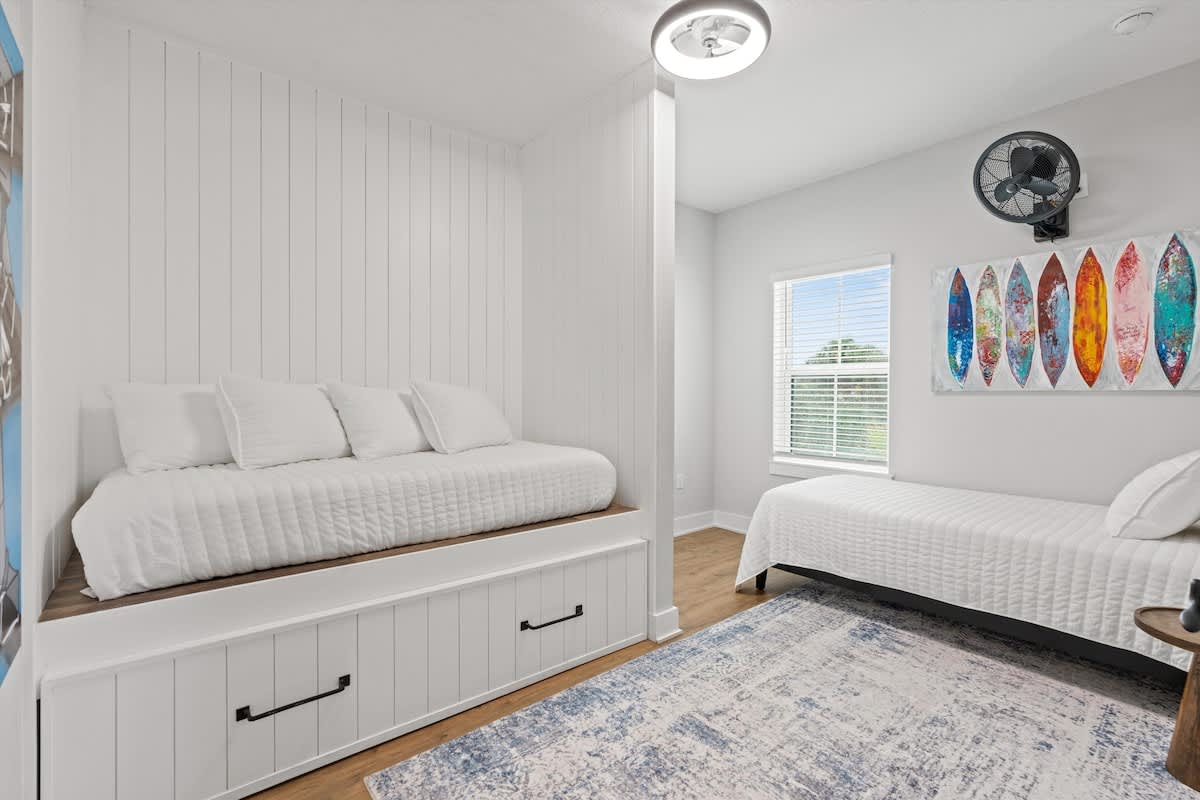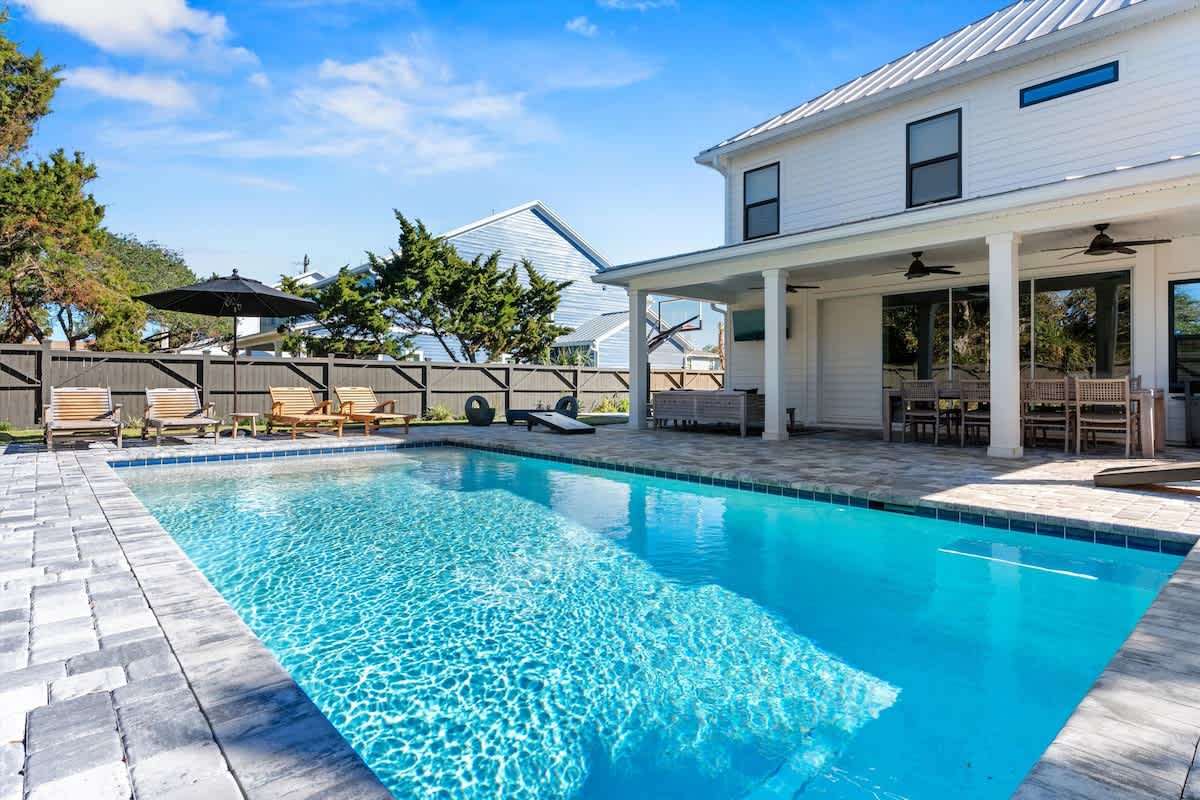 Welcome to Florida’s Luxury Beach Living! This BRAND NEW coastal home is spacious and ideal for large groups, accommodating up to 12 guests comfortably. Enjoy the stunning outdoor oasis featuring a Basketball court, lounge chairs, Smart TV, cornhole, outdoor dining area with charcoal grill, outdoor shower and new large heated pool with a sun shelf perfect for sunbathing. Guests also love the garage for fun competition playing ping pong. This home sits in the perfect location just one block from the beach and 8 minutes to St. Augustine Historic District. The fully stocked gourmet kitchen includes a coffee pot, blender, hot water kettle, a butler pantry and all essentials for your convenience. We provide beach essentials such as towels, 6 chairs, an umbrella, a beach cart, and a rolling cooler. Our local favorite spots are provided in our customized house manual for your exploration! FIRST FLOOR Living room with queen pull out sofa and air mattress option Kitchen/Dining area, Half bathroom Laundry room Game Room with ping pong table Sliding doors you can open to enjoy the breeze to the outdoor dining and large heated pool SECOND FLOOR Primary Bedroom with King, one twin pull out couch and a walk-in closet and large shower. Bedroom 2 with two twin beds and one twin includes twin trundle (sleeps 3 people comfortably) Bedroom 3 with a queen bed, Full Guest bath with a bathtub/shower combo THE LOCATION 1 block from beach access. 4 min walk/2 min drive to publix grocery store and Vilano Coffee Shop (Local) 8 min drive to Downtown Saint Augustine 11 min drive to San Sebastian Winery and The Tini Martini Bar 30 min drive to TPC Sawgrass 36 mins drive to Ponte Vedra Inn & Club Lots of fine shopping and dining within a 12 min drive. This is a perfect house for golf trips, family vacations, or a couples retreat! *** Pool heaters are turned off 4/15 - 9/15 Guests use pool at own risk. *** Please note: all modern pool heaters are technically unable to heat water once the outdoor temperature drops below ~55°F. This is a universal equipment limitation, not specific to our property, so we encourage guests to plan accordingly during cooler months. This home is managed by the Jax Beach locals, Mealer Management. We specialize in vacation rentals in Northeast Florida so our team is just minutes away to help during your stay. If this property doesn't suit your needs, we manage studios to 5-bedroom homes with different amenities. Ask about our discounts for weekly and monthly bookings! Thanks for considering our properties! Hope to host you soon. Coco and CJ Mealer Mealer Management Please note: that we have a strict NO PARTY policy. Any parties or noise complaints will lead to penalties and fines.