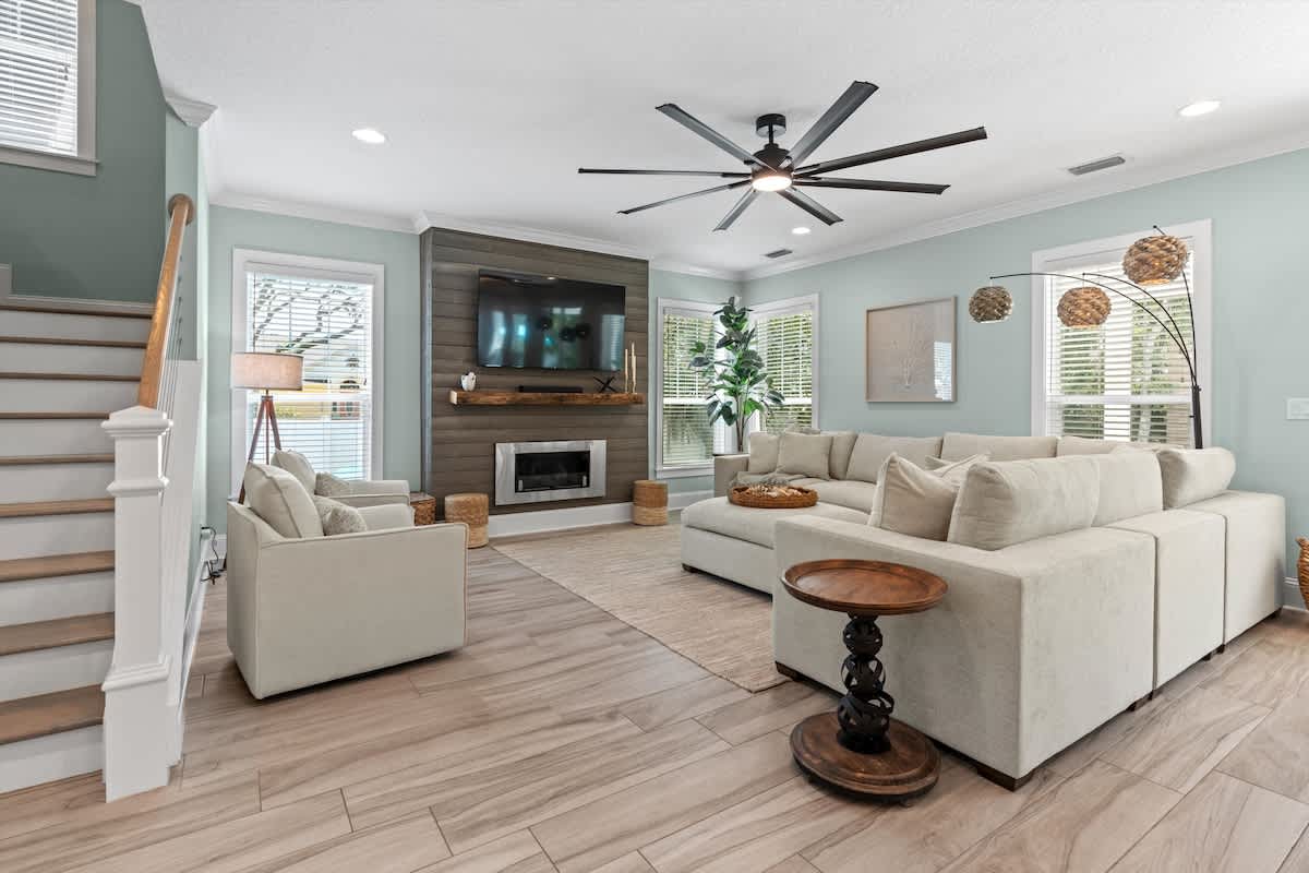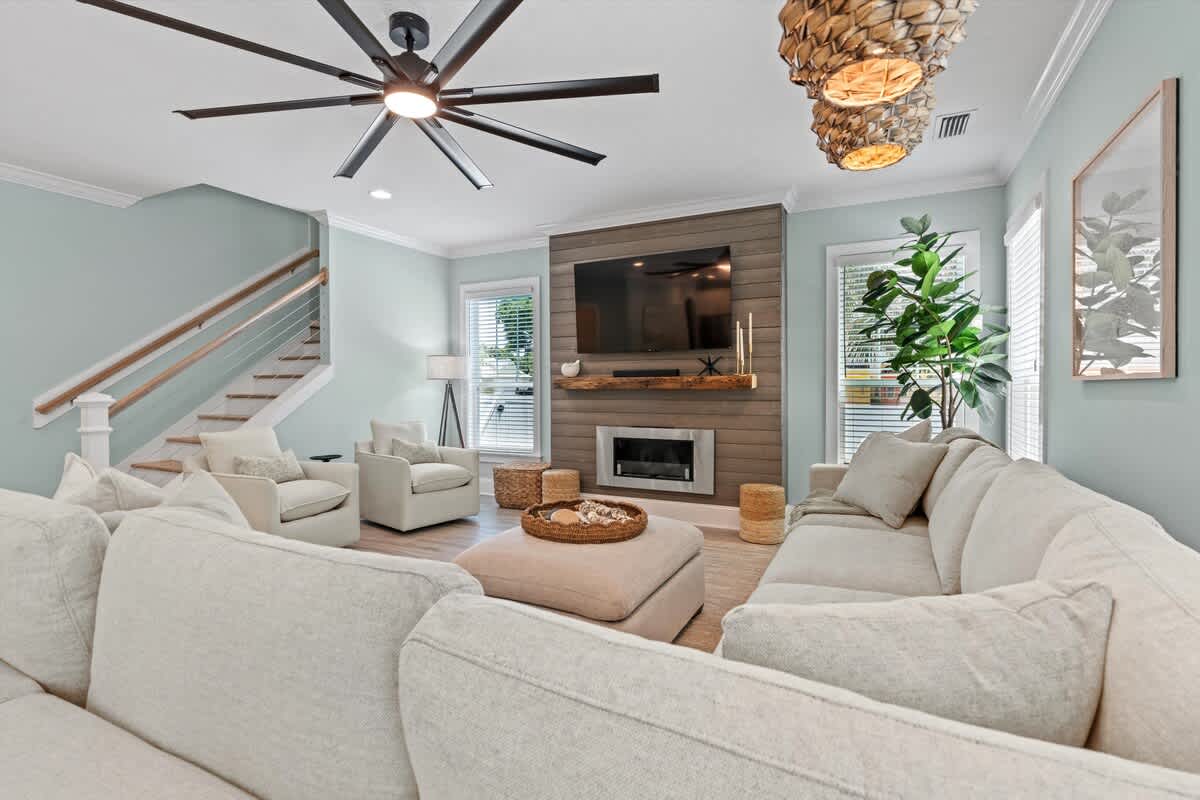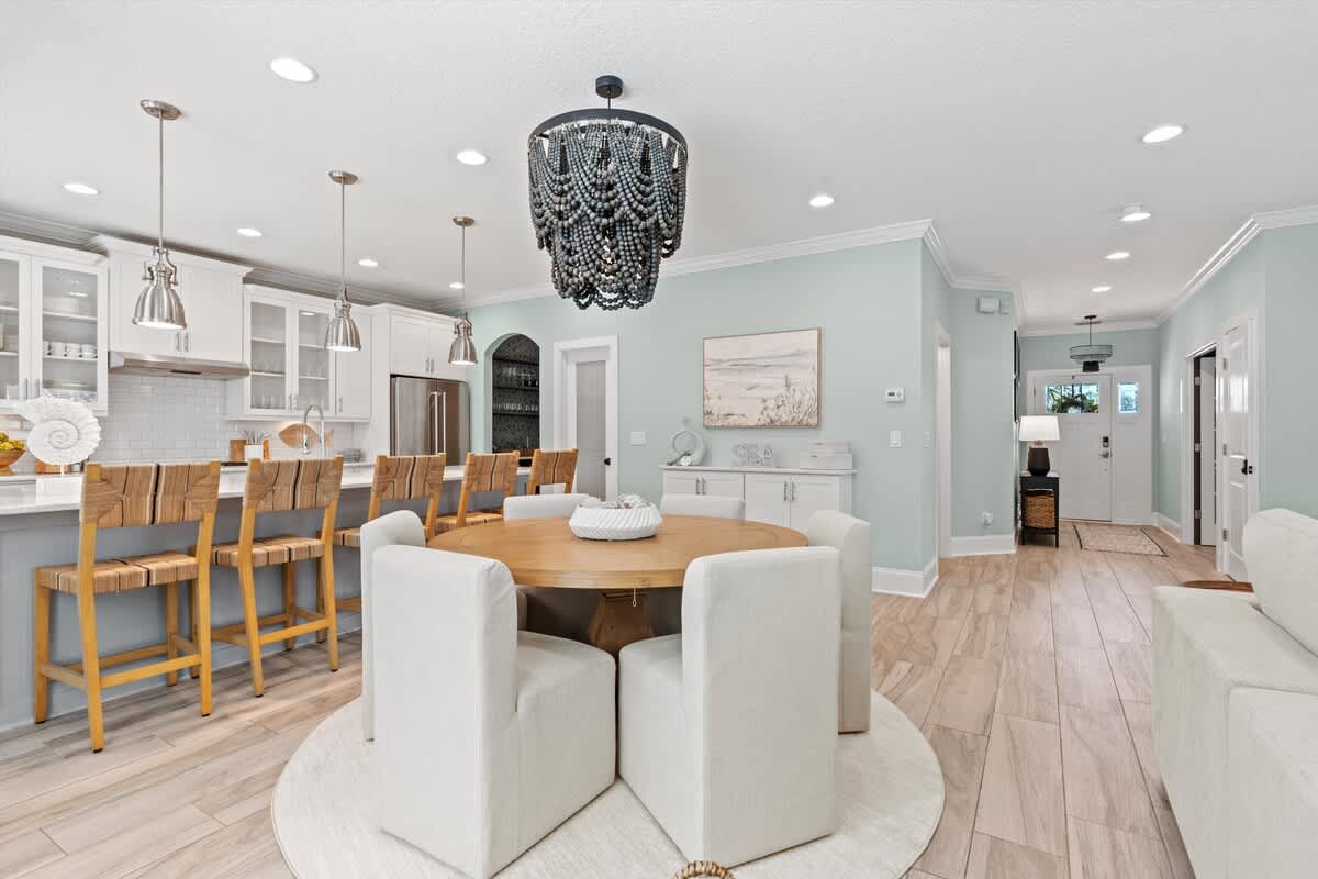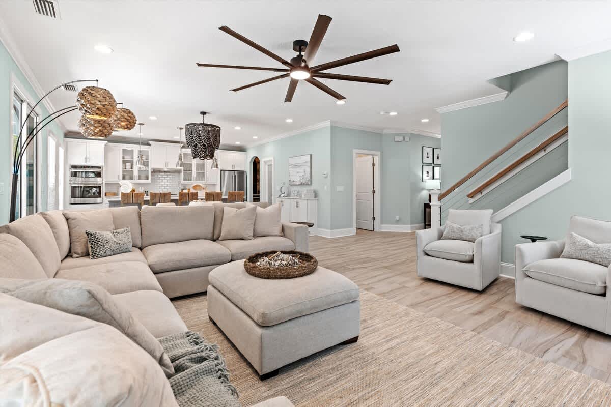 This beautifully updated coastal retreat is perfect for large groups, comfortably sleeping up to 14 guests with 5 spacious bedrooms and 3.5 bathrooms and there is room for our air mattress. Whether you're planning a family getaway or a group vacation, you'll love the open layout and resort style amenities.