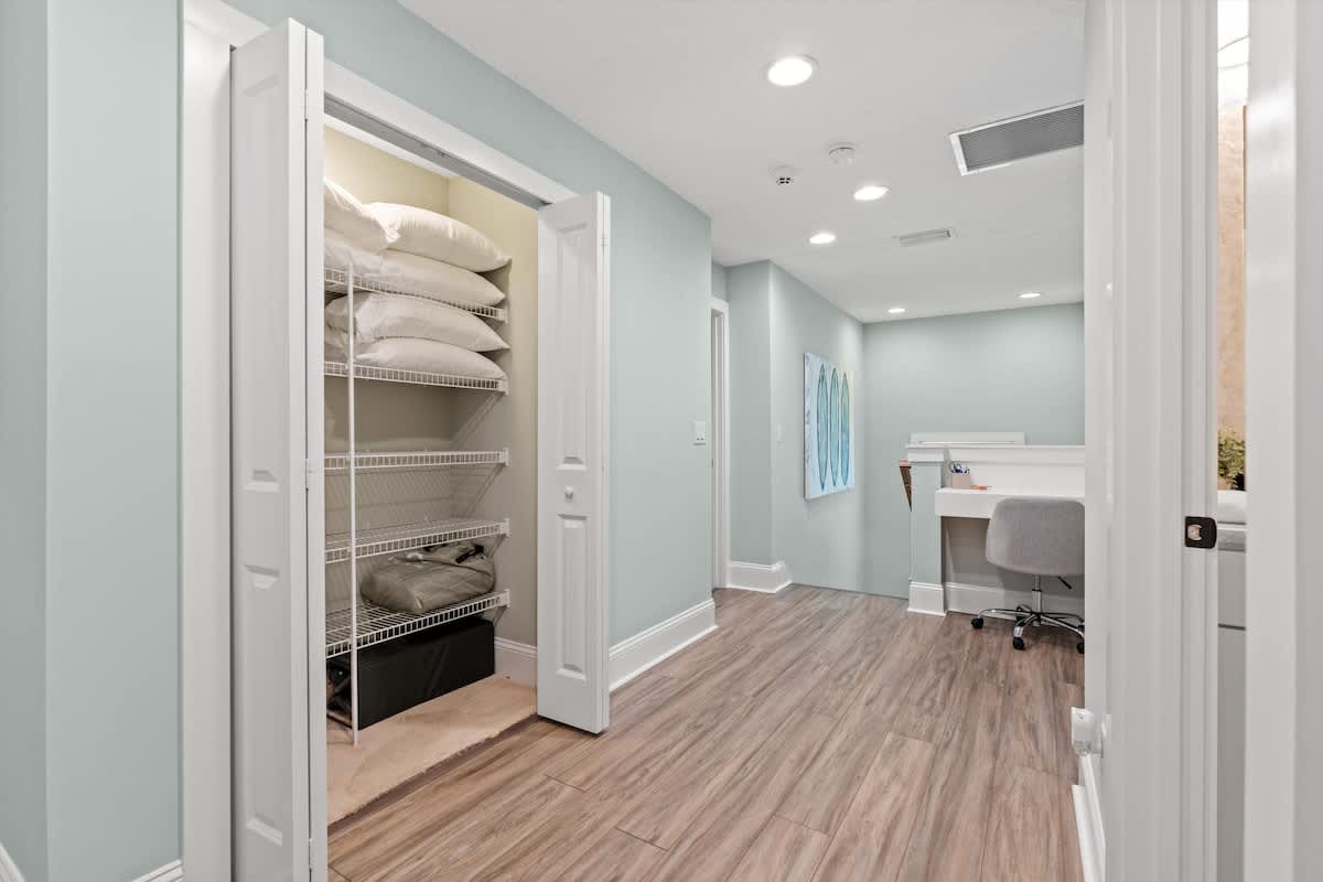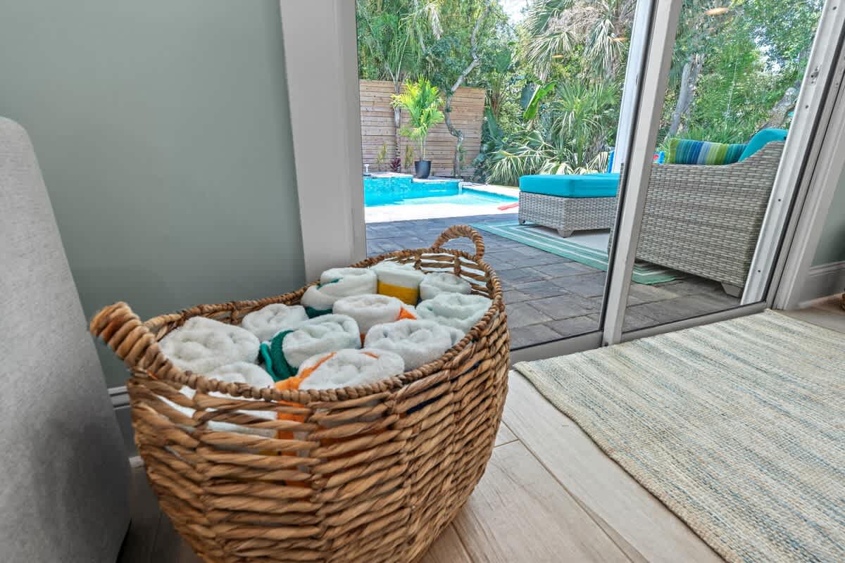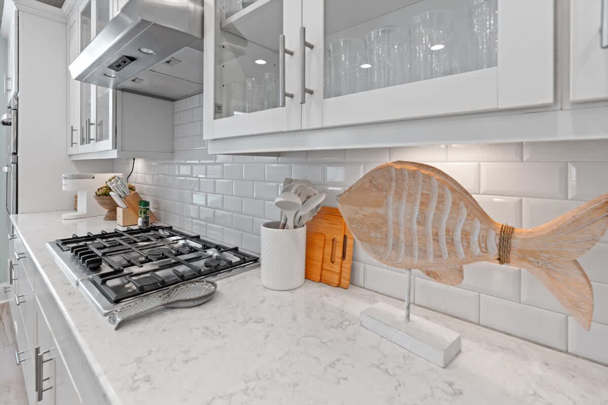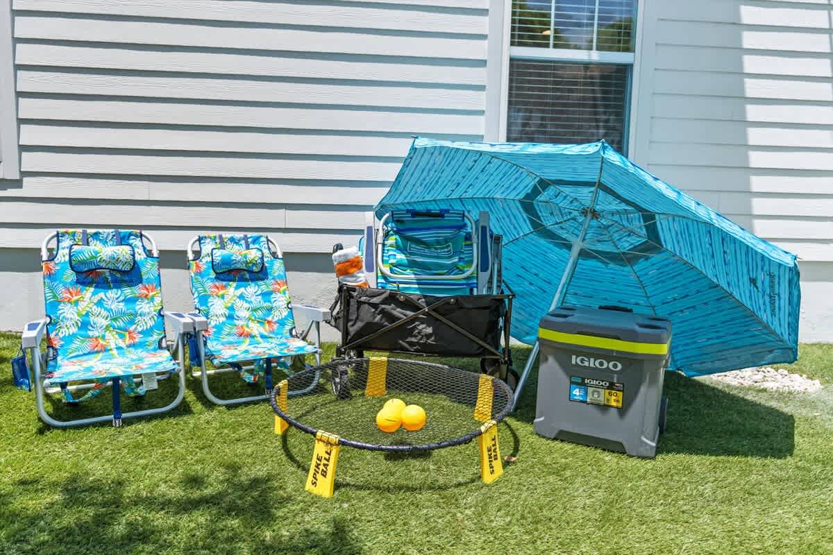 The fully stocked gourmet kitchen includes a gas cooktop, Keurig, blender, hot water kettle, wine fridge, and all the essentials to make you feel at home. For your beach days, we provide towels, 6 chairs, spikeball, an umbrella, beach cart, and a rolling cooler.