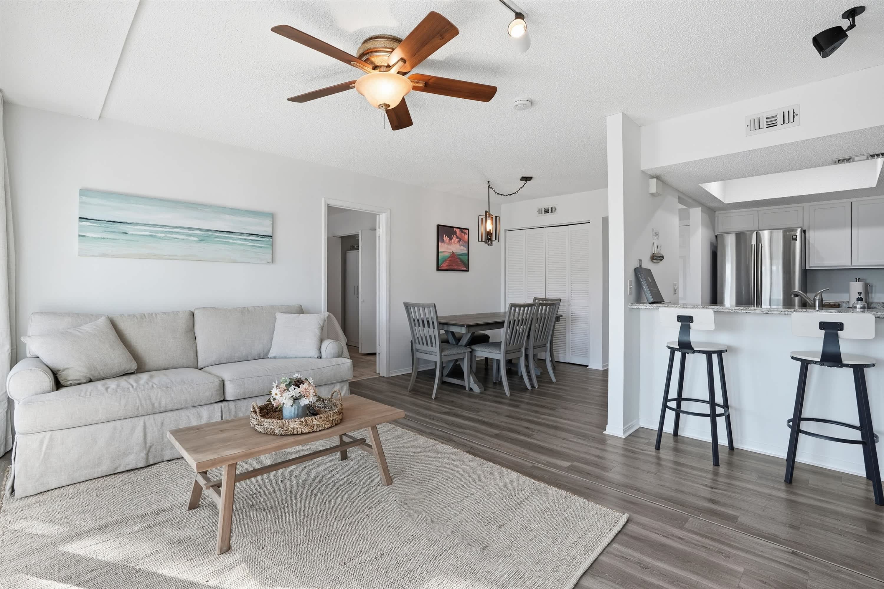 LESS THAN A 1/2 MILE FROM THE OCEAN! This space is freshly updated at the perfect location. Very clean with a non contact check in! You’re a short walk to many coffee shops, restaurants, bars and the sand. Less than 4 miles away from Mayo Clinic. Your place is very clean and has a modern, coastal vibe. Everything you need including 5 beach chairs, umbrella, grill and kitchen essentials!